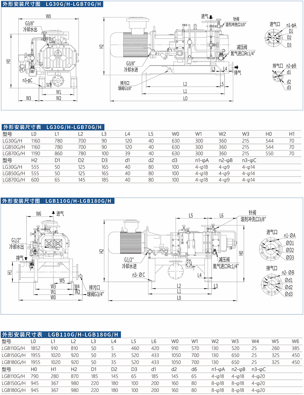 As mechanical tyoe vacuum pump equipped with a pair of constant pitch screws in pump housing, LG series screw vacuum pump canrealize the gas intake and exhaust by the synchronous rolation of the two screws in high speed. The two dynamic balanced screws aresupported by bearings and installed within pump chamber. There are clearances between the two screws and the pump housing, sothe pump operation can be smooth and with a low noise and free of lubricant in the pump chamber. The dry screw pump can be usedto pump the gases that contain a mass of vapor and a small guantily of paricles. lt is also an environmentally friendly andand it is theenergy-saving vacuum pump. Generaly the pump has the advantages in energy conservaion and easy maintenances, updated vacuum pump replacing an oil seal vacuum pump, liquid-ring vacuum pump and reciprocating vacuum pump。